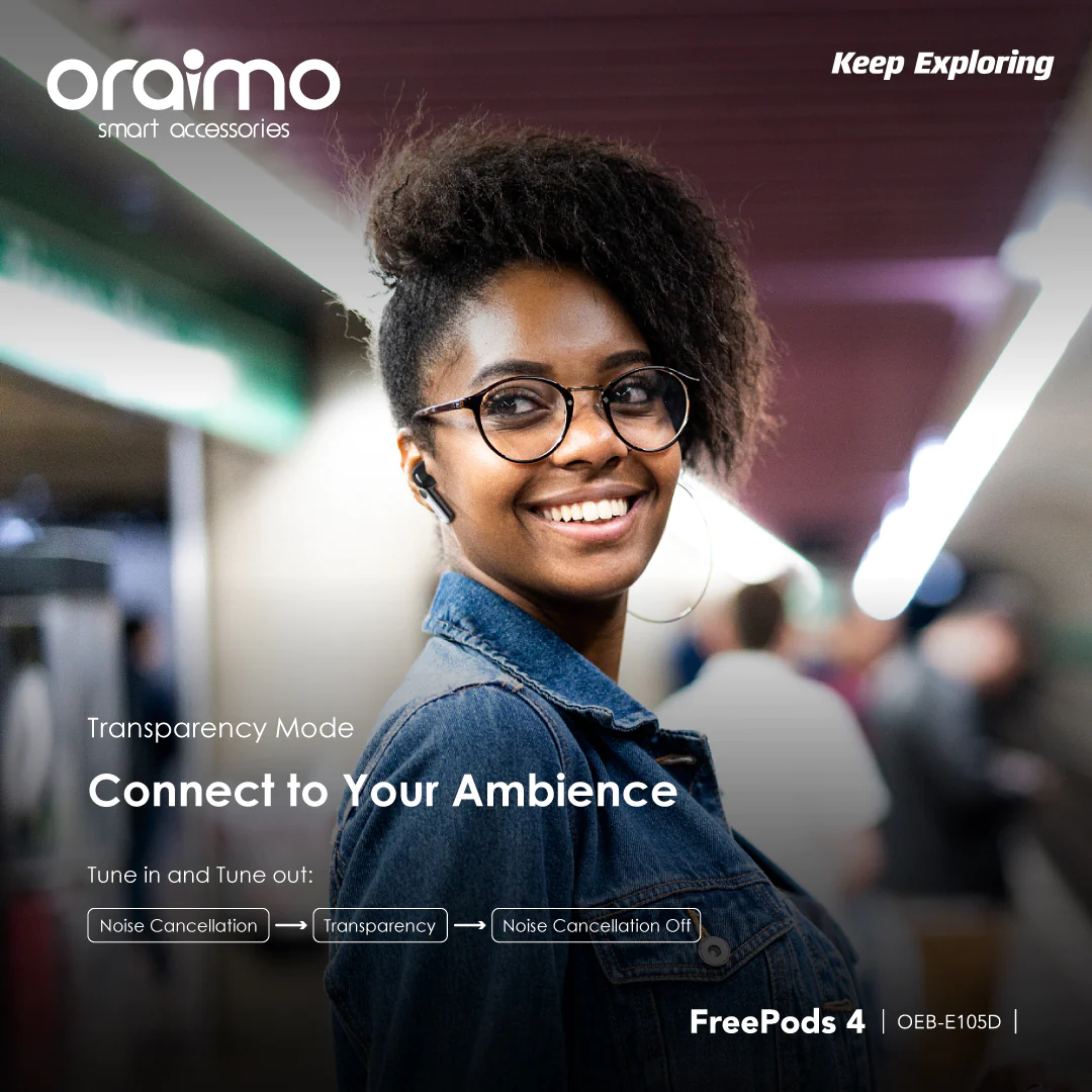 Elevate your audio experience in Kenya with oraimo FreePods 4 ANC True Wireless Earbuds. Enjoy premium features like Active Noise Cancellation, Havy Bass, 35.5-hour Long Playtime, Google Fast Pairing, low-latency Game Mode, high-sensitive Sensor, smart touch controls.and 5 EQ Modes. Dive into a world of immersive sound!